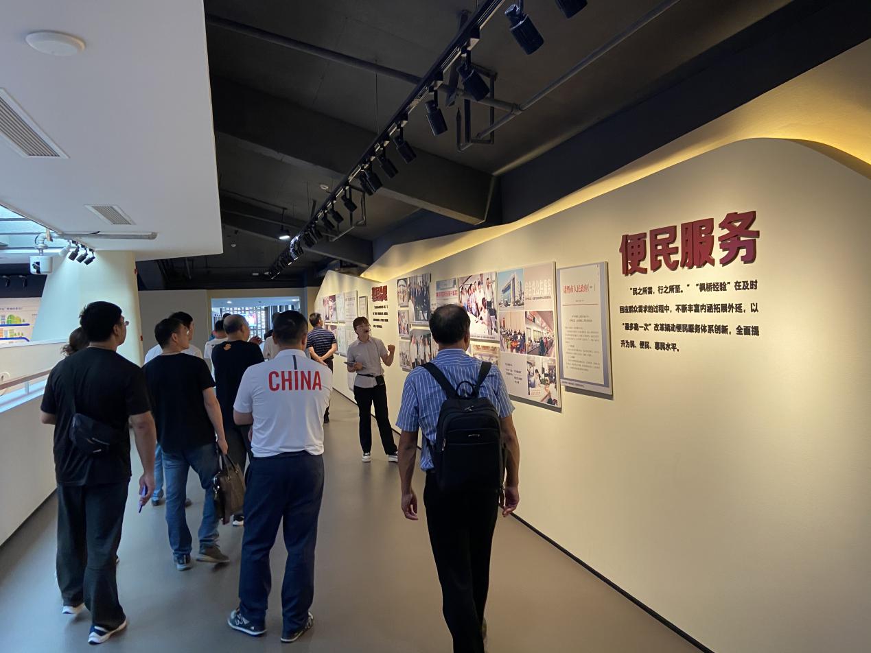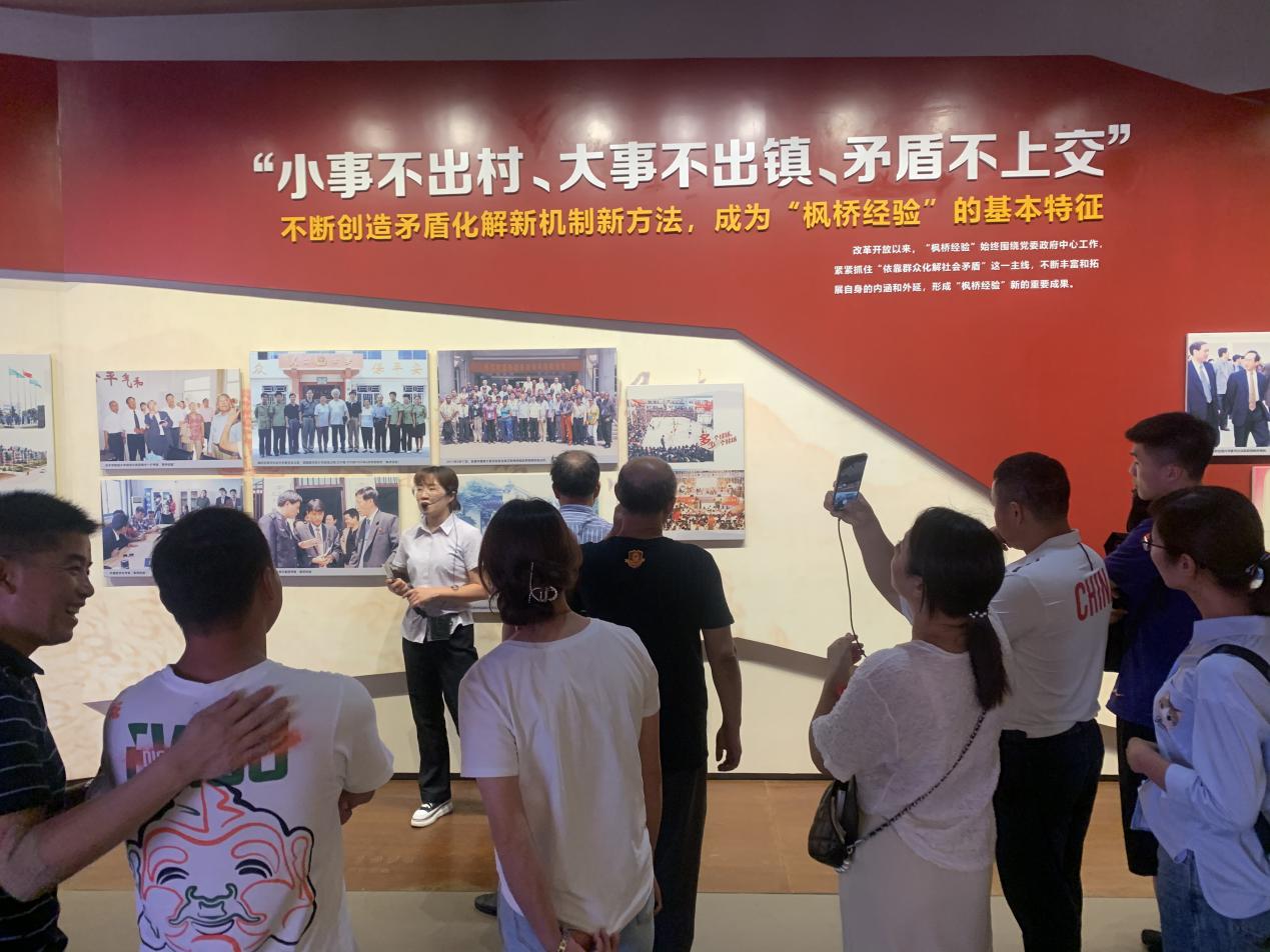 作为“枫桥经验”最重要的展示场馆,枫桥经验陈列馆位于枫溪江畔,总建筑面积5040平方米,布展面积3370平方米,不仅保留了相对完整的历史资料,也全面展现了新时代“枫桥经验”的最新成果。场馆内,在讲解员的带领下,名师班学员先后实地参观学习了,“枫桥经验”的诞生(1963)、“枫桥经验”的演进(1963-2003年)、“枫桥经验”的发展(2003-2018年)、“枫桥经验”的升华、新时代“枫桥经验”在浙江的探索实践五大展区。讲解员的动情描述、形象生动的图文呈现出“枫桥经验”的发展历程,为全体名师班学员上了一堂生动的思政课,使大家深切地感受到“小事不出村、大事不出镇、矛盾不上交”的“枫桥经验”的内涵及意义。