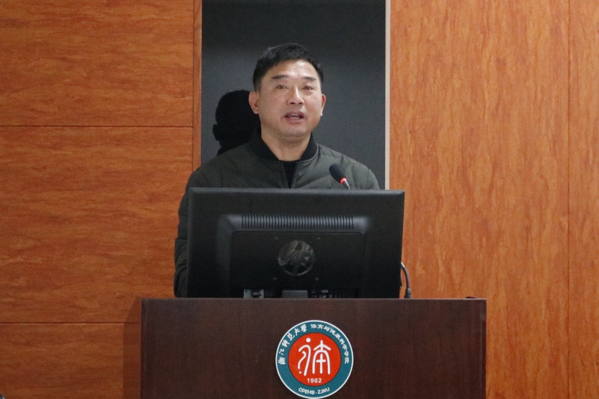 院长薛岚代表学院班子做2021年学院工作报告,对学院一年来的工作做了全面回顾和总结。一年来,全院教职工围绕既定战略目标,上下团结一心,努力克服新冠疫情给学院各项事业带来了巨大的挑战,在做好常态化疫情防控工作的同时,学院在党的建设、学科建设、专业建设、人才培养、师资队伍、运动竞赛、社会服务、校园文化建设等方面都取得了新的成绩,在多个重要方面取得突破性进展,为推进学校争A创优和学院高质量内涵式发展作出了应有贡献。他指出在新的一年里学院在建设高层次学术平台、推出高水平学术成果、扩大学科影响力方面都面临着大量的、繁重的工作任务,学院将坚持新发展理念,构建新发展格局,为早日建成博士学位点,全面建成具有全国竞争力、影响力和美誉度的高水平教学研究型学院而努力奋斗。
