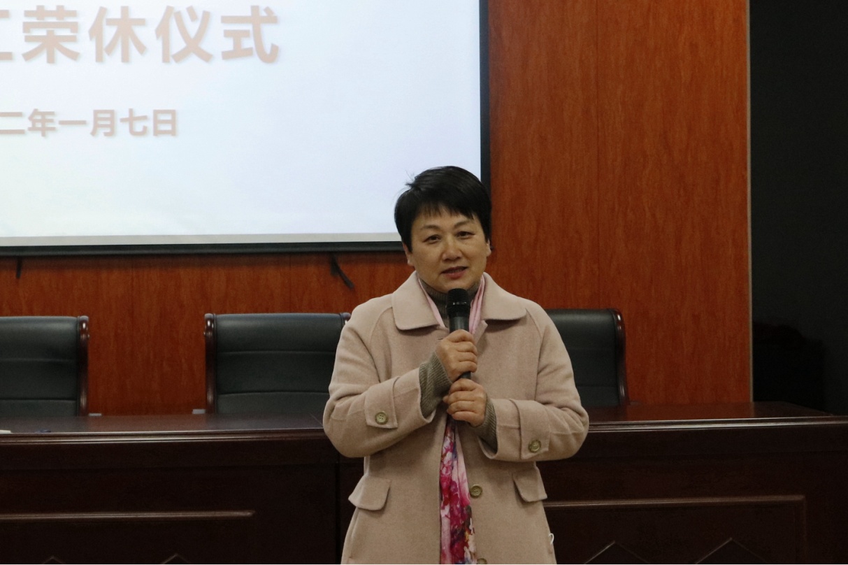 院长薛岚、党委书记姜洪友分别为两位老师颁发了退休荣誉证书,献上了鲜花。全体教职工用热烈的掌声为两位老师送上了美好祝福。