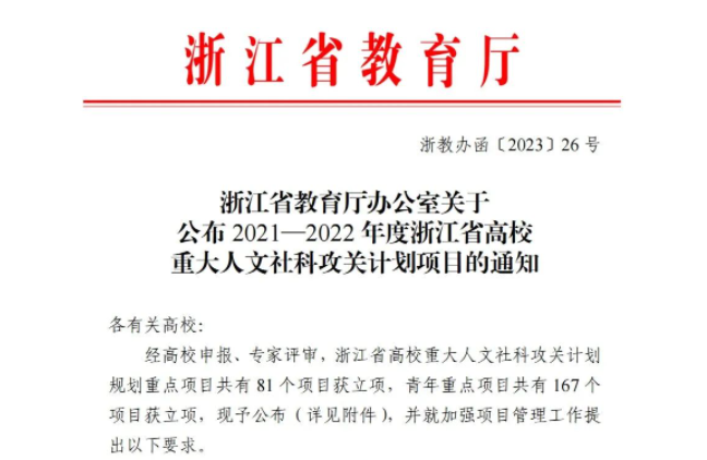 据悉,本次浙江省高校重大人文社科攻关计划规划重点项目共有81个项目获立项,kaiyun开云有5个规划重点项目立项。