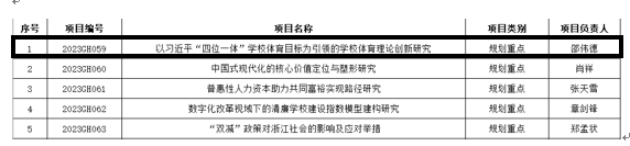 近日,浙江省教育厅公布了2021—2022年度浙江省高校重大人文社科攻关计划项目立项评审结果。经高校申报、专家评审,kaiyun开云邵伟德教授主持的《以习近平“四位一体”学校体育目标为引领的学校体育理论创新研究》获规划重点立项,资助经费20万。