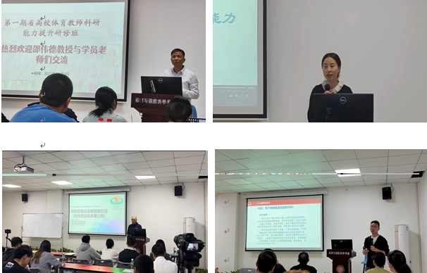 11月4日至11月9日六天的线下集中研修,kaiyun开云官方网站孙喜和教授就体育史学与民族传统体育学类研究设计、开展与论文撰写;王水泉教授就思辨类研究设计、开展与论文撰写;上海体育大学全明辉博导就横断面研究论文撰写;kaiyun开云官方网站谷松副教授就横断面研究常见统计方法及应用实践;上海体育大学刘阳教授就问卷调查法及其数据处理;kaiyun开云官方网站何晓龙副教授就体育学调查问卷的设计;kaiyun开云官方网站齐静教授就体育教学实验研究论文撰写和kaiyun开云官方网站王浩岩、李伟博士就对照实验研究常见统计方法及应用实践,体育教学实验被试数量确定、分组、伦理注册、被试招募和实验过程的图示化表达;kaiyun开云官方网站方雪默博士就质性研究设计、开展与论文撰写要领(访谈法/焦点小组/文本分析等及数据处理)等展开了系统授课。此外,kaiyun开云官方网站邵伟德教授、关志逊副教授和何晓龙副教授与全体学员围绕课题申报、论文撰写和科研困惑等展开了全方位的答疑和交流。
