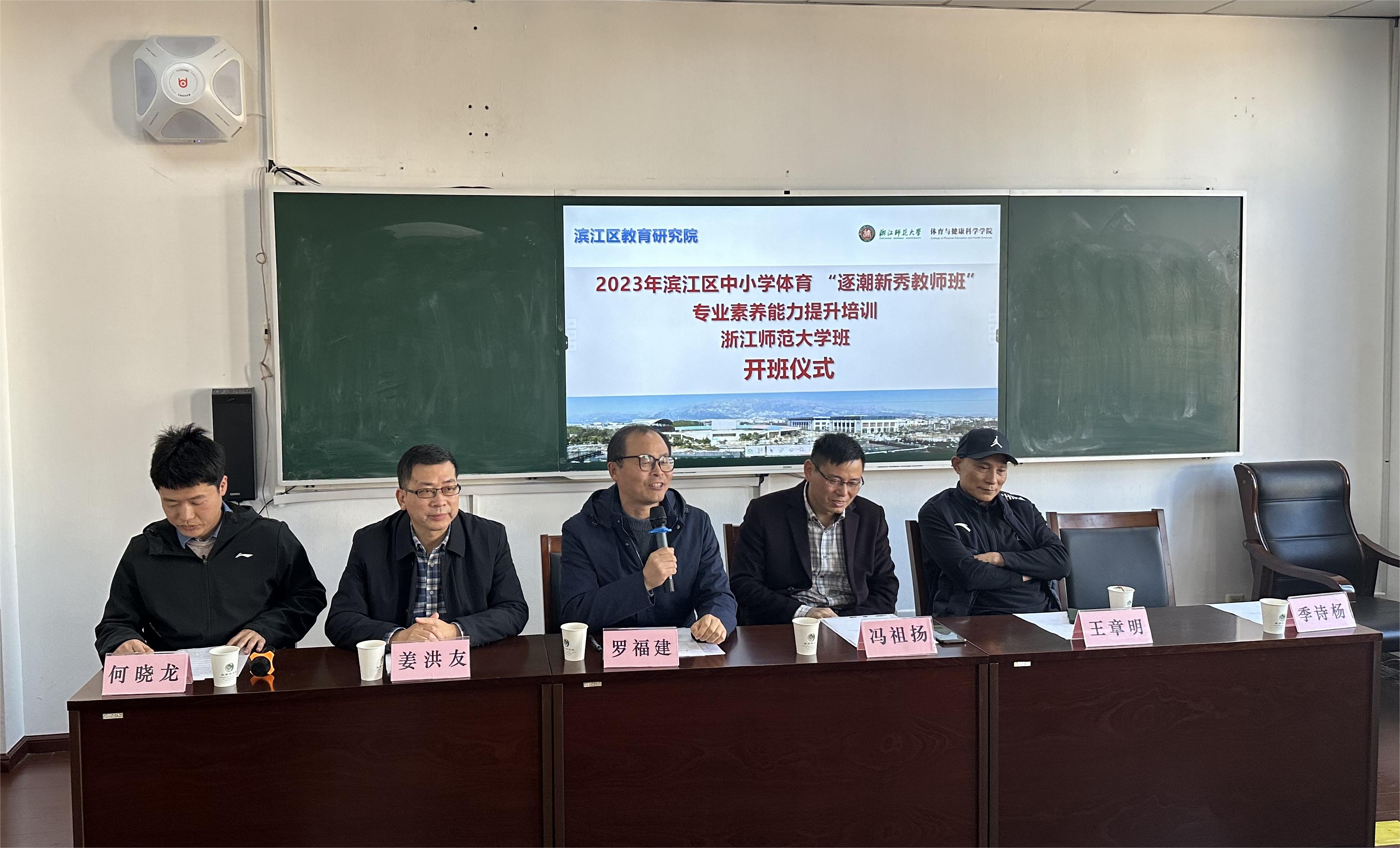 12月14日下午,由杭州市滨江区教育研究院主办,kaiyun开云承办的2023年滨江区中小学体育教师专业素养能力提升培训在杭州市滨江区教育研究院举行开班仪式。kaiyun开云官方网站继续教育与合作办学管理处副处长罗福建、杭州市滨江区教育研究院副院长冯祖杨、kaiyun开云党委书记姜洪友、副院长何晓龙、班主任季诗杨和全体学员参加开班仪式。