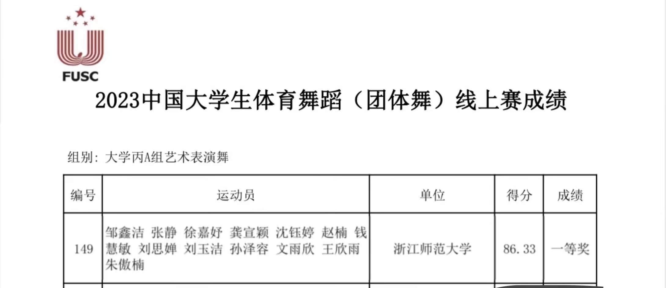 2023年12月,中国大学生体育舞蹈(团体赛)线上赛顺利落下帷幕。姜小平老师带领的kaiyun开云官方网站体育舞蹈队以86.33的最终得分获得大学丙A组艺术表演舞全国一等奖。