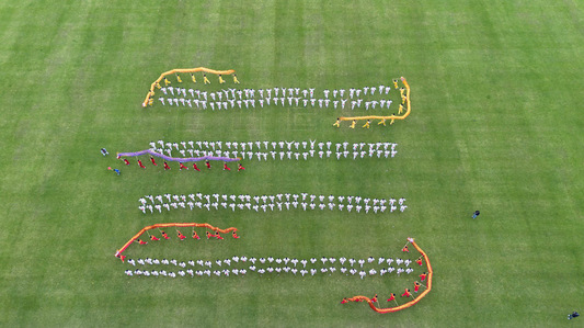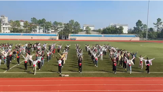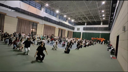 256名学生组成的“中华健身鼓团队”来自全校的公共体育课班级,包括亢子艺老师的公共体育--健美操班和公共体育健美操队队员、姜小平老师的公共体育--牛仔班和校体育舞蹈队成员以及公体健艺舞教研室其他老师公共体育课班上的学生。