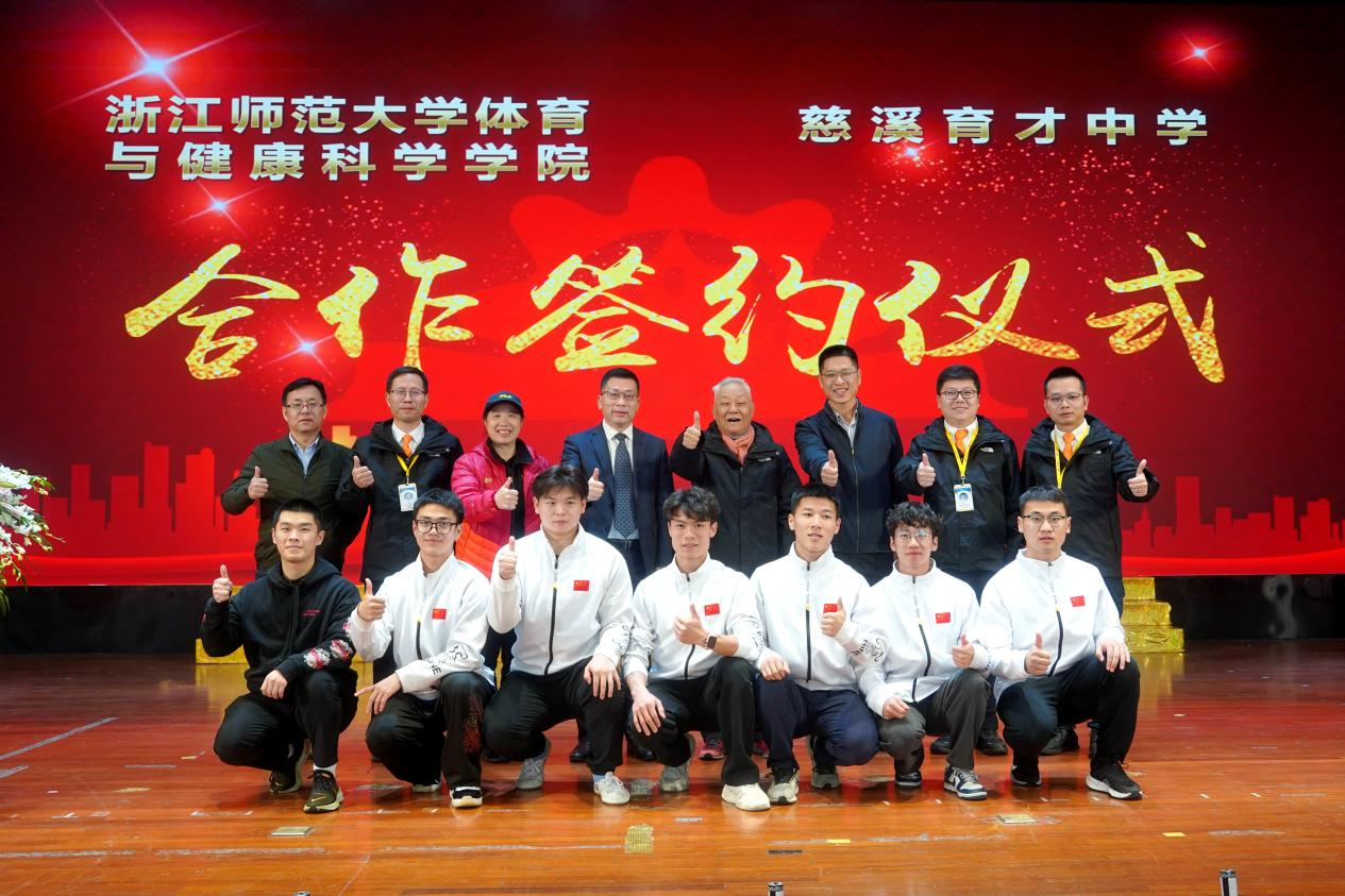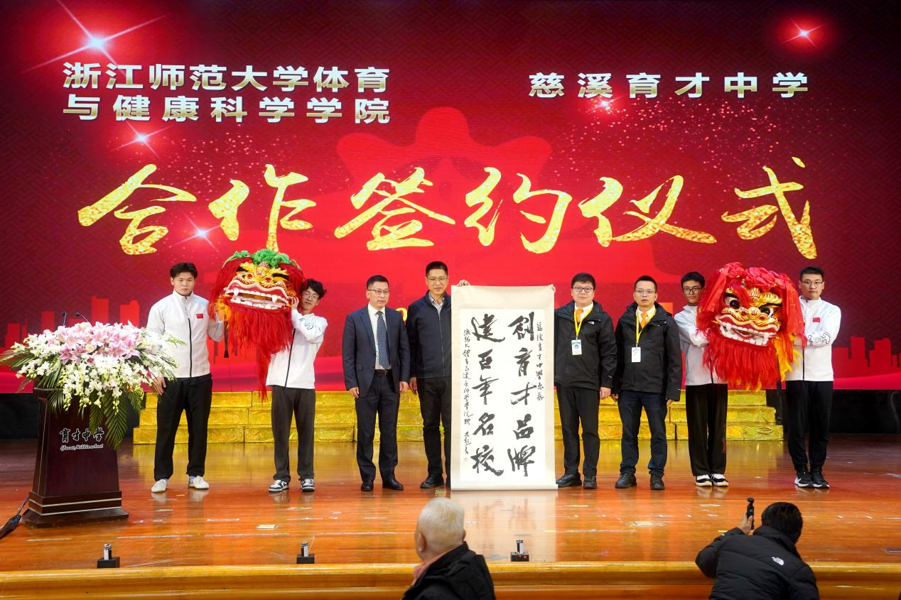 11月24日下午,kaiyun开云官方网站kaiyun开云官方网站与慈溪育才中学校园体育特色项目打造合作签约仪式在慈溪育才中学举行,这是kaiyun开云与中小学层面签署的第一份教育合作协议,具有里程碑式的意义,标志kaiyun开云发挥体育专业优势,探索高等教育与基础教育协同育人模式迈出了实质性步伐。慈溪育才中学董事长沈宏邦、慈溪育才中学常务副校长高鹏、副校长王建荣,kaiyun开云党委书记姜洪友、党委副书记林振调出席签约仪式。慈溪育才中学师生代表和kaiyun开云师生代表参加签约仪式,签约仪式由慈溪育才中学党支部书记、校长沈建锋主持。