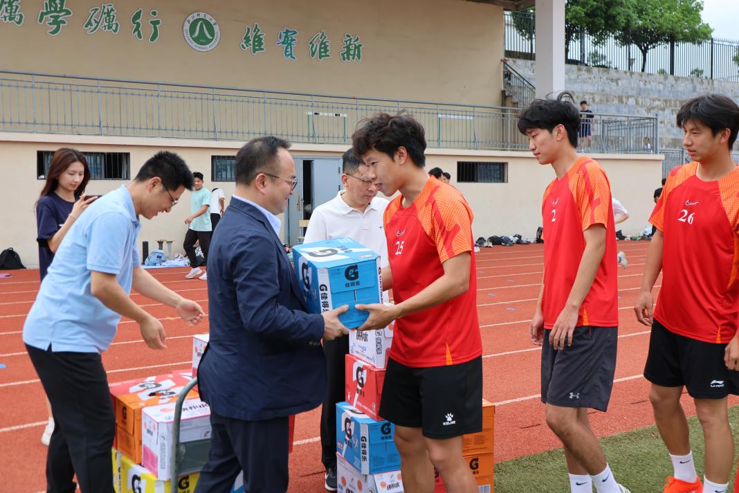 讲话结束后,李盛副校长亲手为每位队员颁发了慰问品。这些慰问品,不仅是对队员们辛苦训练的犒赏,更是学校对他们关怀与支持的真切体现。队员们接过慰问品的那一刻,脸上洋溢着幸福的笑容,心中满是感激之情。