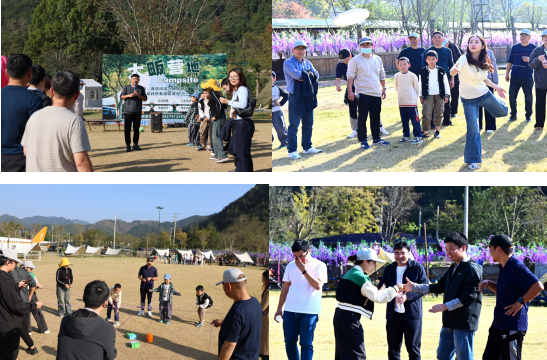 午后暖阳洒落,一行人驱车前往大畈营地。营地依山傍水,景致开阔,集房车区、水域体验、草坪活动等多功能于一体,是开展户外协作的理想场所。在教练的引导下,大家迅速破冰分组,展开了多项趣味团建活动。“接力筑塔”环节,体育学院教师身手矫健,传递迅速;医护团队则严谨细致,稳扎稳打。双方各展所长,默契协作,每一次成功的搭建都引来阵阵喝彩。随后的“飞盘接力”与“大合舞”更是将气氛推向高潮,大家在奔跑与欢笑中释放压力,也在配合中悄然拉近了彼此的距离。