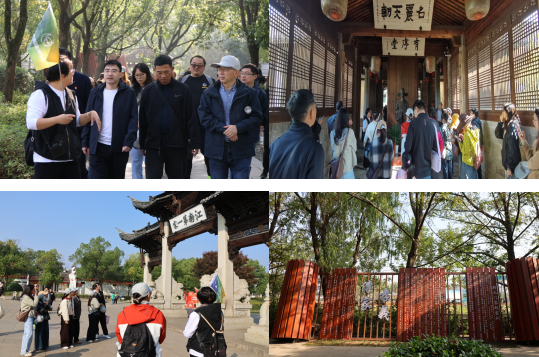 在轻快悠扬的朗朗歌声中,满载着欢声笑语的大巴车缓缓启程。首站抵达位于浦江县郑宅镇的“江南第一家”——郑义门。青砖黛瓦、流水潺潺,九座巍峨牌坊依次矗立,无声讲述着“一门尚义,九世同居”的家族传奇。步入景区,郑氏宗祠静立其间,宋濂手植龙柏苍劲依然,祠内匾联林立,“文章空冀北,孝义冠江南”的楹联,道尽了郑氏家族深厚的文化底蕴与清廉传世的家风传承。教职工们穿行于白麟溪畔,驻足于廉政展馆,在历史与文化的浸润中,感受那份跨越时空的孝义力量。