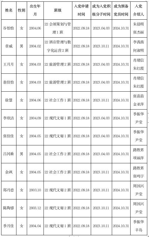 经支委会研究,定于 2024 年 10月 31 日召开党员支部大会,对谷怡怡等12名发展对象吸收为中共预备党员进行讨论,望广大师生予以监督。如不符合条件,请在公示之日起七天内向本支部或上级党委反映,并提供必要的证据。举报电话: 83803652 。
