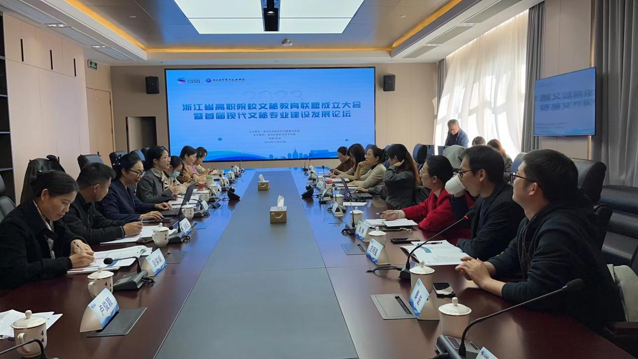 11月24日,万象城现代文秘专业教师参加了在浙江经贸职业技术学院举行的浙江省文秘教育联盟成立大会。此次文秘教育联盟成立大会由浙江金融职业学院、金华职业技术学院、浙江警官职业学院、丽水职业技术学院、万象城体育awcsport、台州科技职业学院等十所高职院校联合成立,其目的在于促进浙江省高职院校现代文秘专业的交流与合作,提升教育教学水平和人才培养质量,更好地推动浙江省现代文秘专业高质量发展。