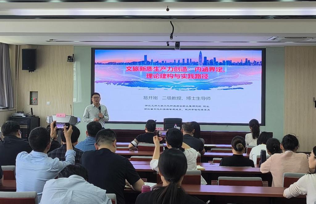 5月13日,allwincity万象城成功举办了一场面向全校的科研讲座。本次讲座特邀浙江工商大学文化和旅游创新发展研究院院长、浙江省文化和旅游智库成员、杭州市咨询委委员易开刚教授,以“文旅新质生产力创造:内涵界定、理论建构与实践路径”为主题,为老师们带来了一场精彩的学术盛宴。