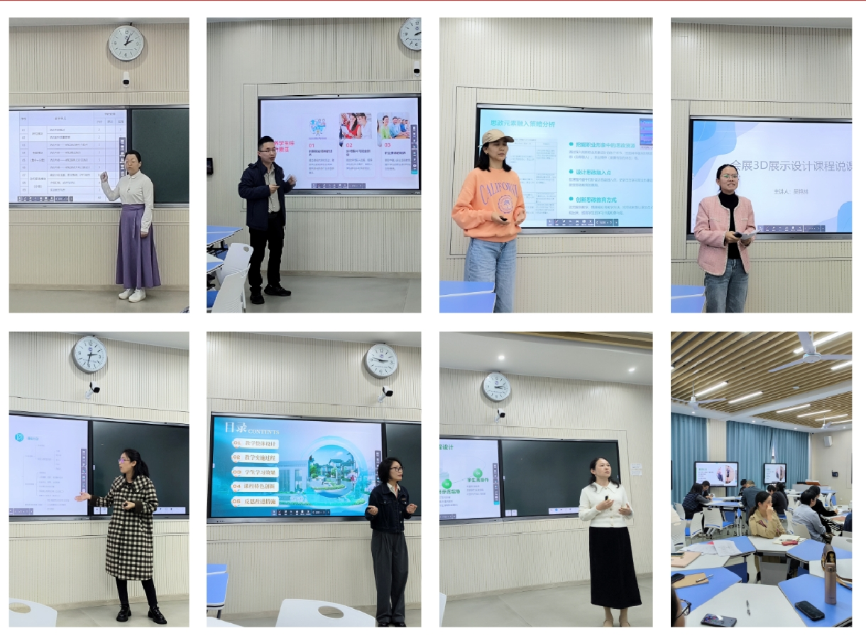 活动中,来自五个不同专业的七位课程负责人分别就《酒店实地考察》《职业形象设计》《民宿经营与管理》《会展3D展示设计》《秘书职业形象设计与礼仪》《社区工作》以及《社会工作法规与政策》等课程进行了精彩的说课展示。他们围绕课程对接岗位情况、课程内容的项目化体系、课程思政体系、产教融合的教学实施、理实一体化考核方式以及后续改革举措等多个方面,全面展示了各自课程的建设成果和教学特色。