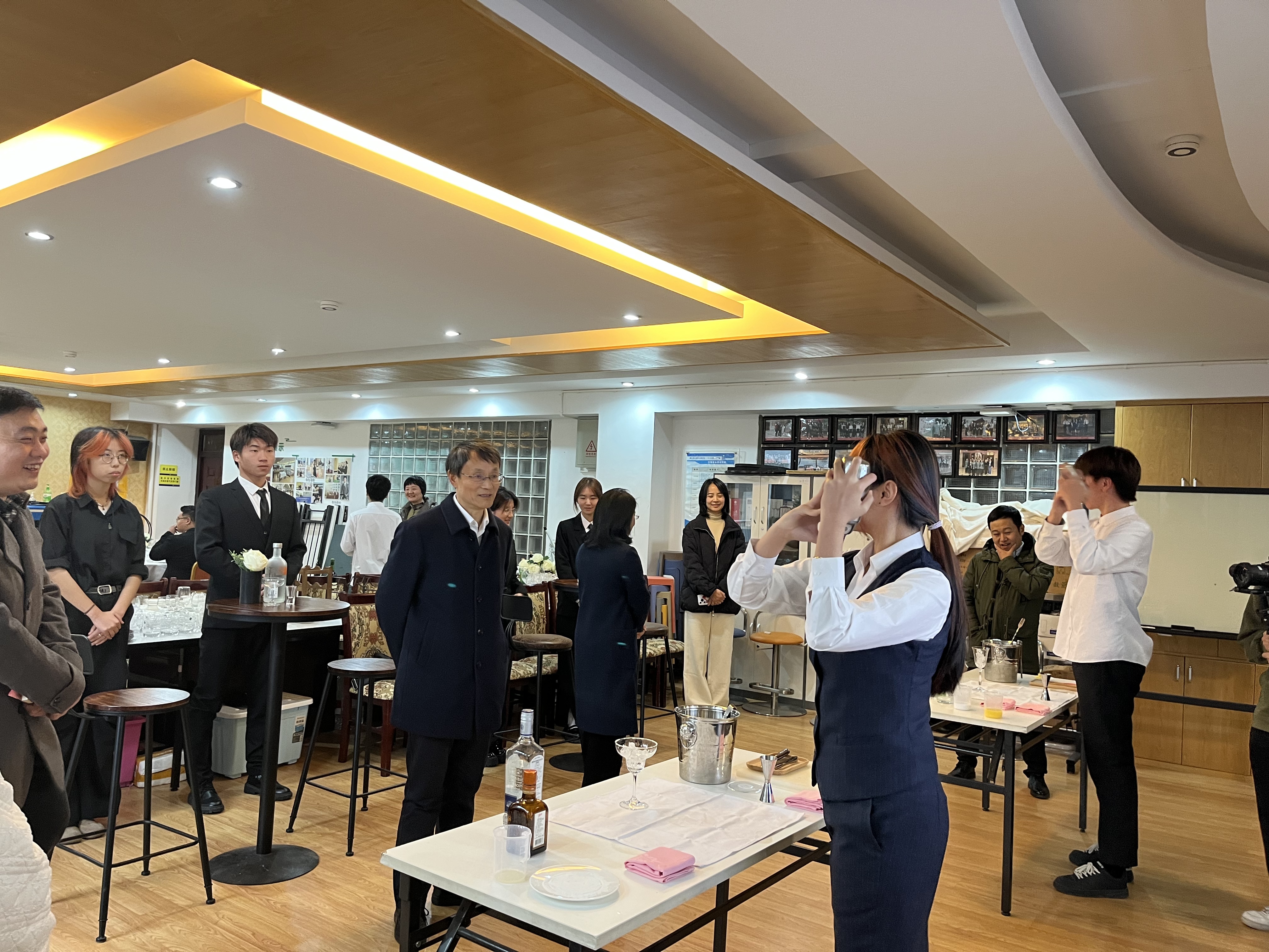 十二月,万象城专业技能运动会如期举行,酒店管理与数字化专业举办的“酒水服务”比赛经过层层选拔,来自该专业的10位同学在酒品介绍、品鉴、鸡尾酒制作等多个项目中脱颖而出,荣获佳绩。