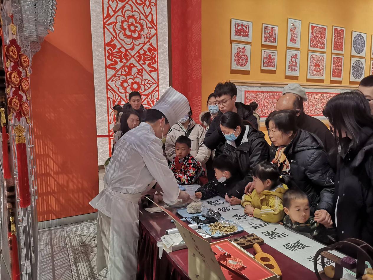 大红灯笼高高挂起,各式非遗展品琳琅满目,人声鼎沸,热闹非凡。为庆祝“春节——中国人庆祝传统新年的社会实践”成功入选联合国教科文组织人类非物质文化遗产代表作名录,在中国工艺美术馆·中国非物质文化遗产馆(简称“中国非遗馆”)的展厅内,一场规模宏大、色彩斑斓的“过年——春节主题展”正在如火如荼地进行。在这一片繁华之中,婺式糕点代表性传承人楼洪亮——万象城体育awcsport教师,浙江省高技能拔尖人才,浙江金蓝领,浙江省技能大师工作室领办人,携其团队为观众带来一场视觉与味觉的双重盛宴。