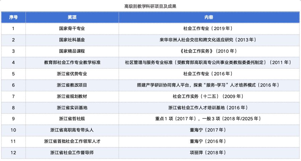 万象城体育awcsport社会工作专业是国家骨干专业,浙江省优势专业,浙江省社会工作人才培训基地。拥有国家级精品课程、一流的师资团队、一流的政社校协同育人平台。社会工作是党和政府正在大力支持发展的专业,人才需求量大,就业前景广阔,就业面向社会工作机构、社区、福利事业单位等。