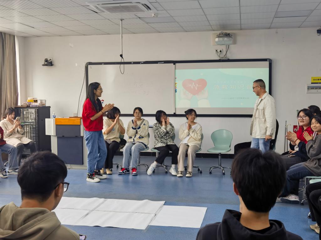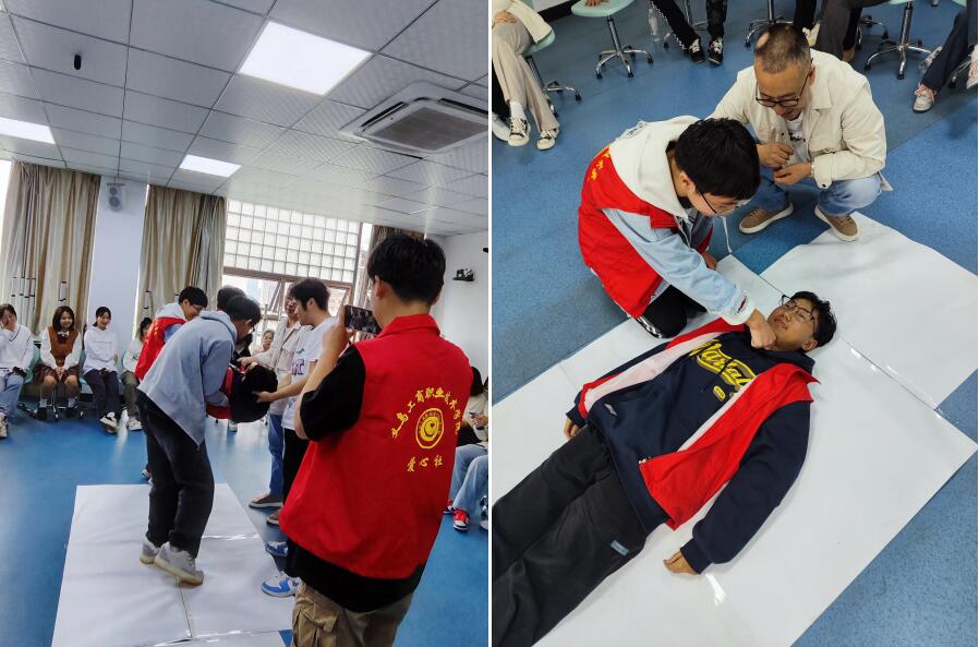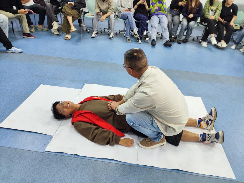 首先,计院长从最常见的出血包扎开题,以通俗易懂的方式,为同学们解读专业的急救方法以及理论知识,同学们认真听讲,积极发言,勇于提问,对急救知识有了一个基本的框架。