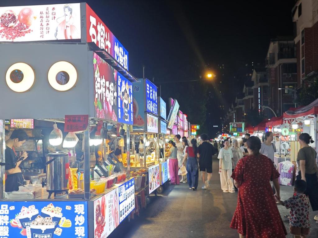 第二站,实践团来到了义乌市青口夜市。青口夜市位于义乌江东街道,以其小吃美食摊位为最大特色,吸引了本地、外地甚至世界各地的游客来此感受人间烟火气。这个夜市经过几年的精心培育和打造,已经成为知名度最高、客流量最大的夜市之一。这里的美食很多元,琳琅满目的商品与拥挤的人潮,让你感受到浓郁的人间烟火气。实践团通过实地走访、与摊主交流等方式,深入了解了青口夜市的发展历程、摊主们的经营现状以及面临的挑战。同时青口夜市的广受欢迎也表明,政府的有效管理和市场的自由竞争相结合,是推动地摊经济健康发展的关键。