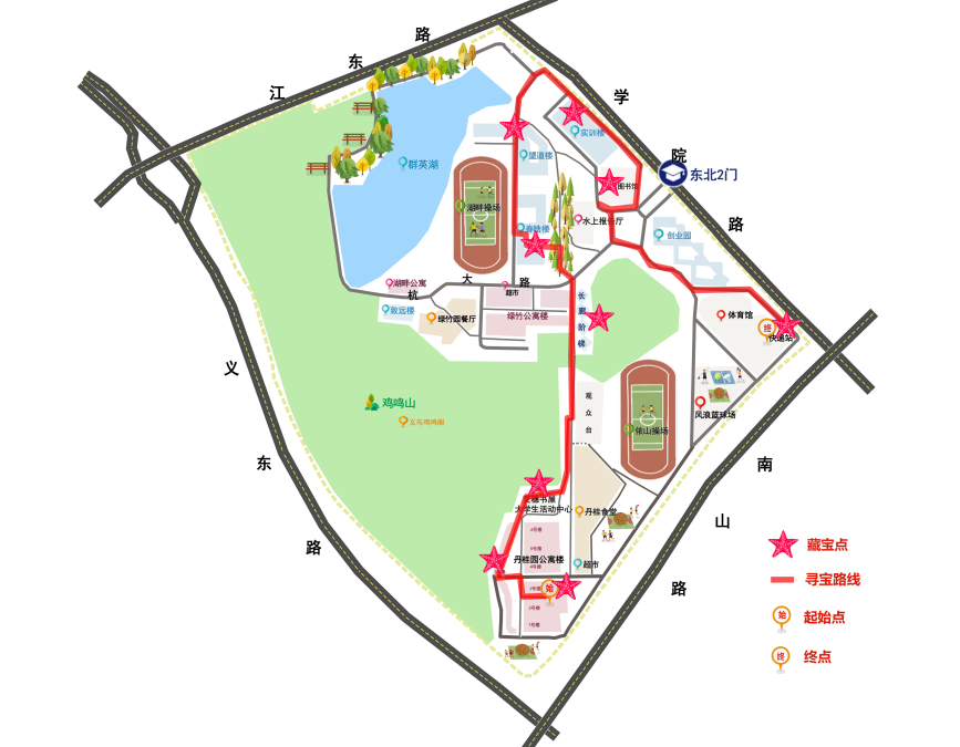 活动开始后,新生们分成若干小组,每个小组都有一名爱心社成员作为导游。他们带领新生们在校园内寻找藏宝点,并通过设点打卡的方式记录下每个藏宝点的位置。新生们通过地图对比、找线索等方式找到藏宝点,同时也了解了校园的各个角落。
