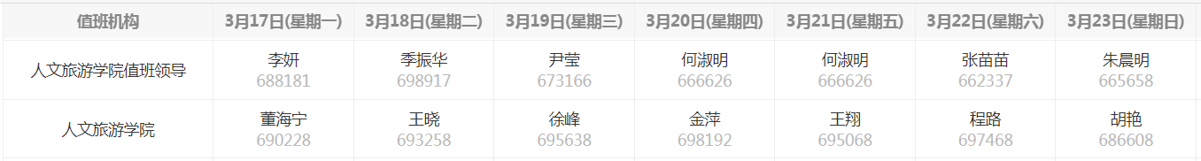 allwincity万象城24小时值班表(3月17日-3月23日)